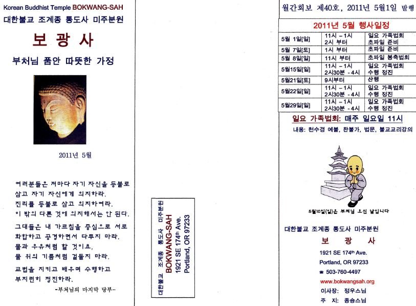 Photos ◄ 1 2 3 4 ... 11 ► 부처님 오신날 법요식 사진 Link 설 합동차례 사진 Link 보광사 야외법회 사진 Link 한인체육대회 참가 사진 Link 여름수련회 사진 Link